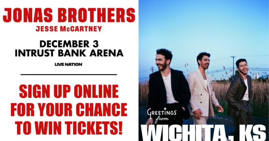To enter the on-air contest, listen each day to 97.1 BOB-FM, 09/29/2025 from 11am-2pm CST and 09/30/2025 – 10/03/2025, between the hours of 6am-2pm CST. When you hear the cue to call, be the correct number caller at 316-397-0927 to win. five (5) total winners will be selected during this contest. The verified winners will receive two (2) tickets to see The Jonas Brothers at INTRUST Bank Arena, 500 E. Waterman, Wichita, KS, on Wednesday, December 3, 2025. Total prize value approximately $70. Contest winners are responsible for all other costs, including ground transportation and parking. In the event that the chosen winner declines the prize, then another person will be randomly selected as the winner. This prize cannot be substituted or exchanged for a different prize. Otherwise, general contest rules apply.