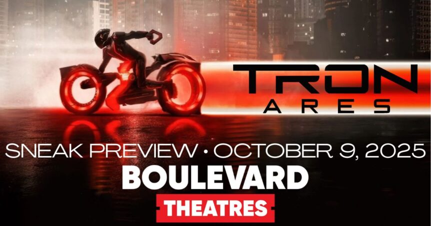 Tron Ares hits the big screen on October 10th, but you can see the sneak preview on October 9th at the Boulevard Theatres at Old Town!