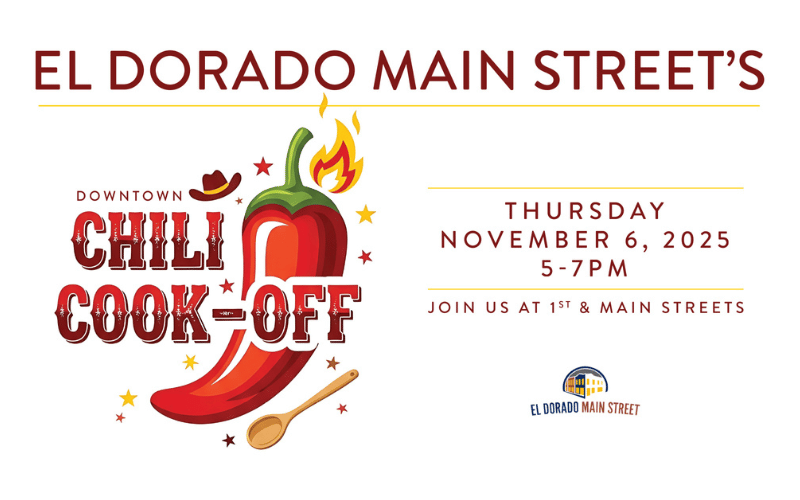 Don’t miss El Dorado Main Street’s “Downtown Chili Cook-Off” this Thursday evening! Enjoy an evening of free chili and vote for your favorite! It’s from 5-7pm in El Dorado!