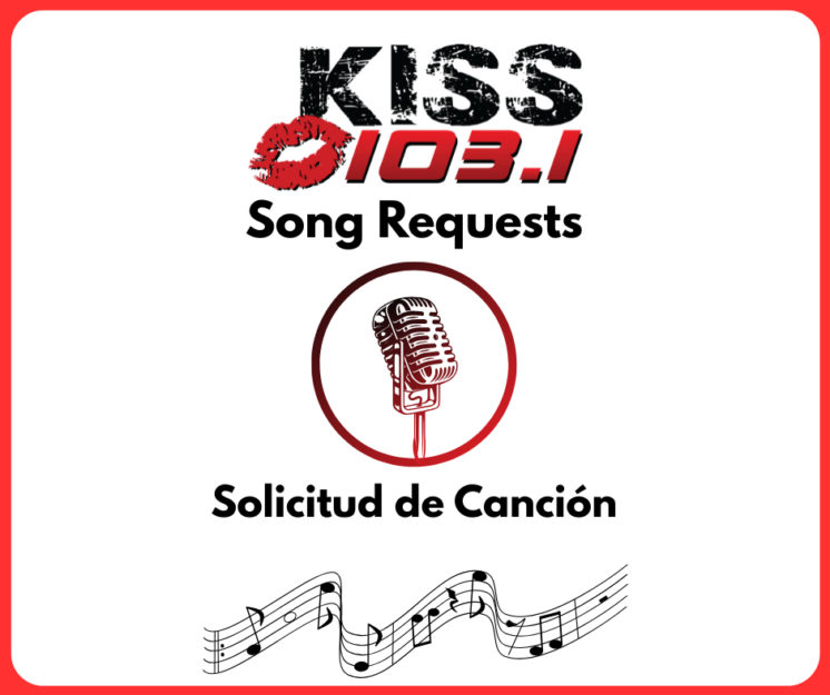 HomeKiss 103.1 Song RequestsKiss 103.1 Song Requests SHARE NOW Kiss 103.1 Song Requests Kiss 103.1 song request form! Name/Nombre(Required) First/Primer Last/Apellido Email(Required) Enter Email/Ingrese Correo Electrónico Confirm Email/Confirmar Correo Electrónico Language/Idioma(Required)EnglishSpanishOtherSong requests/Solicitud de Canción(Required)Have a special song request? Want us to play more of your favorite genre or artist? Put your requests below- and we"ll get them on the air!
